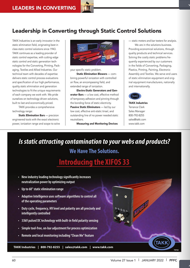 TAKK Industries is featured in the Leaders in Converting section of Paper, Film & Foil Converter (PFFC) January 2022 issue.